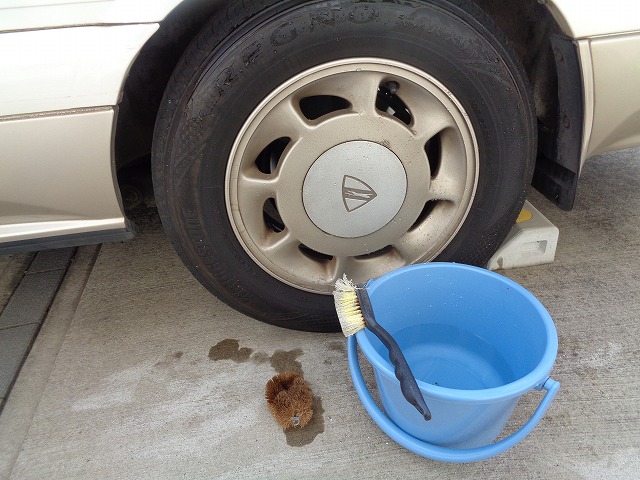 先ずはタイヤをたわしで水洗いしていきます。