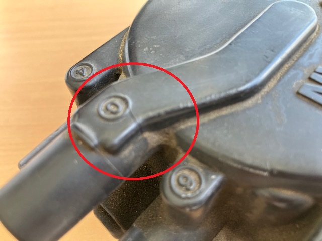 確かによく見ると赤丸部分に若干のひび割れがあります。